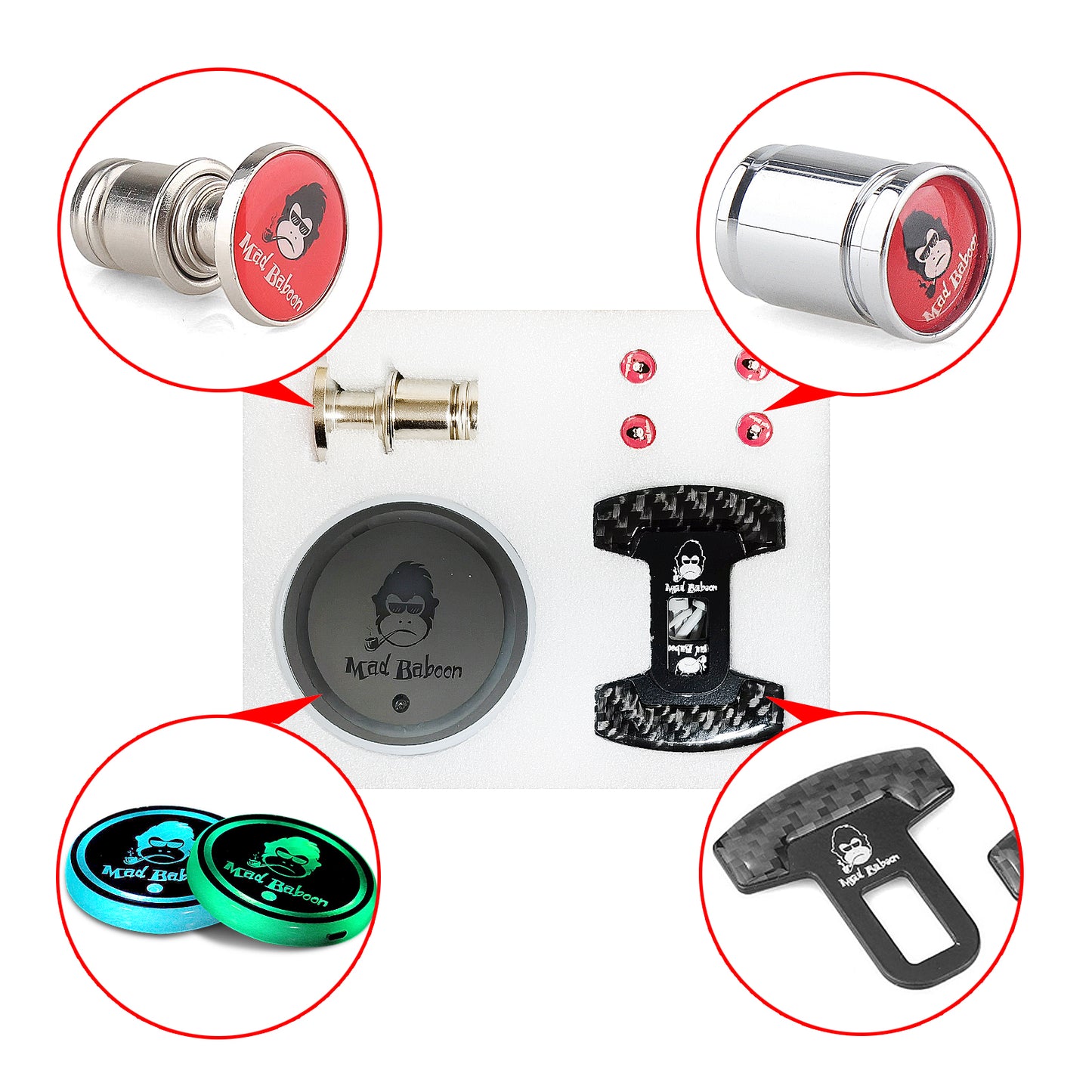 MAD BABOON Car seat belt clip, car coaster, cigarette lighter push button, valve cap, suitable for car interior decoration, gift box packaging