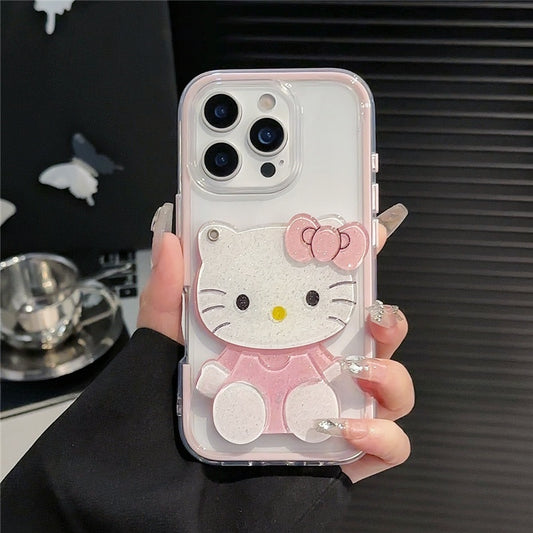 For iPhone Cute Cartoon Case, Women Girls Kids 3D Bow Kawaii Pink Cartoon Face Makeup Mirror Soft TPU Clear Protective Phone Cover