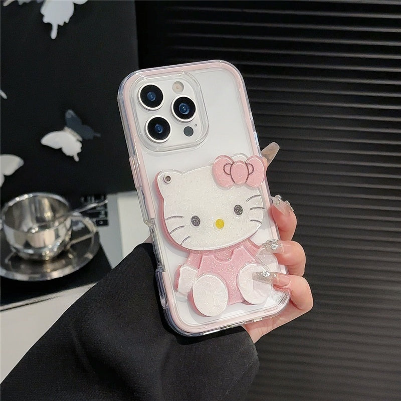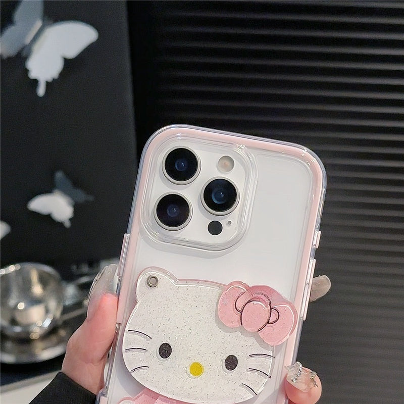 - Women Girls Kids 3D Cute Cartoon Kawaii Bow With Makeup Mirror Soft TPU Clear Protective Phone Case Cover